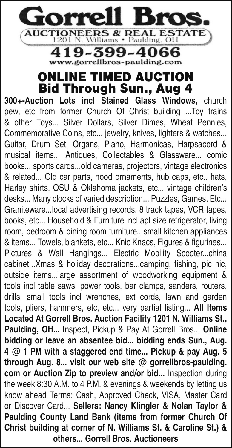 Jul 27, 2024. Gorrell Bros. Auctioneers Auction Ads from The Crescent News