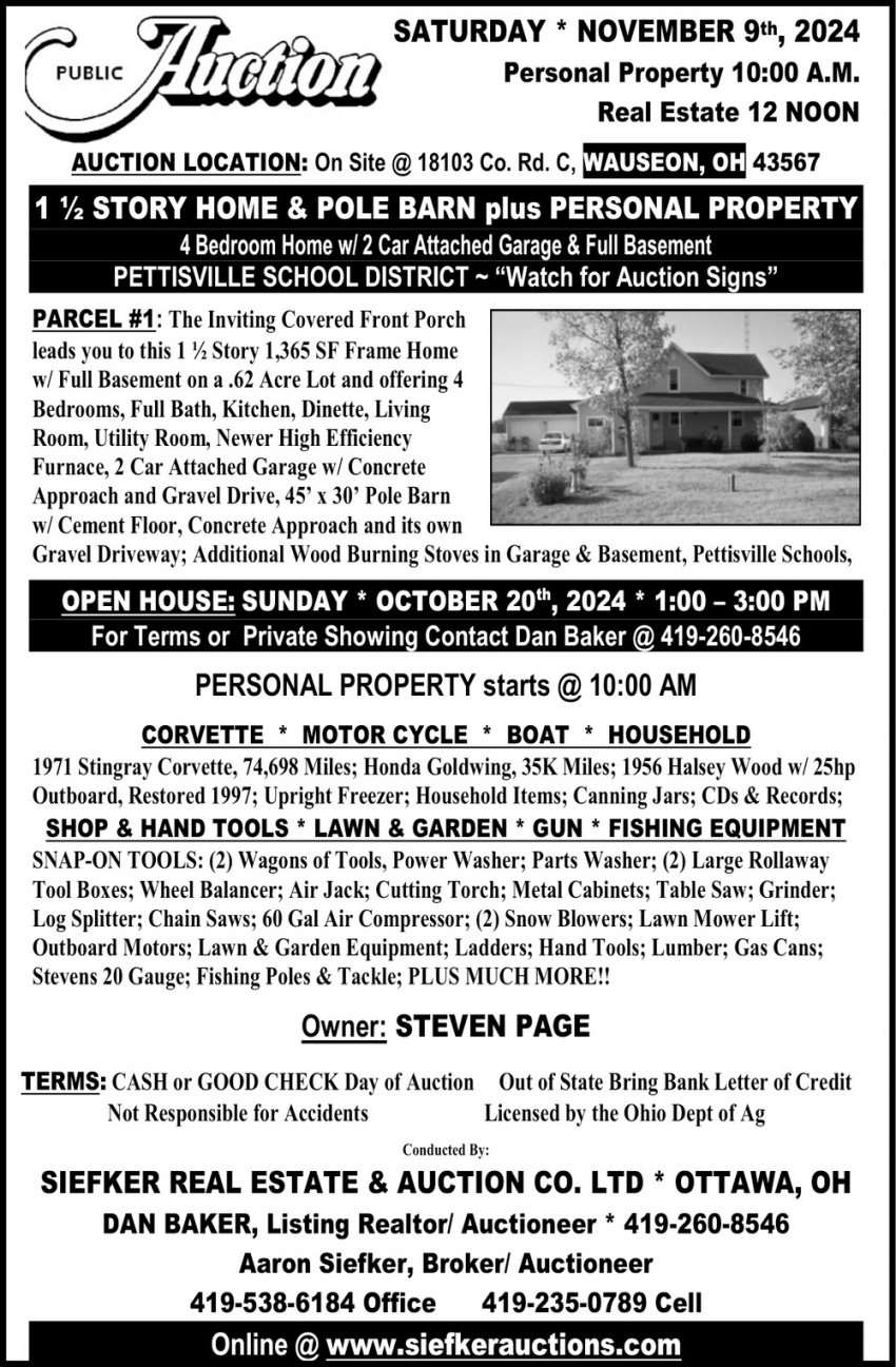 Oct 10, 2024. Aaron Siefker - Siefker Real Estate & Auction Co. LTD Auction Ads from The Crescent News