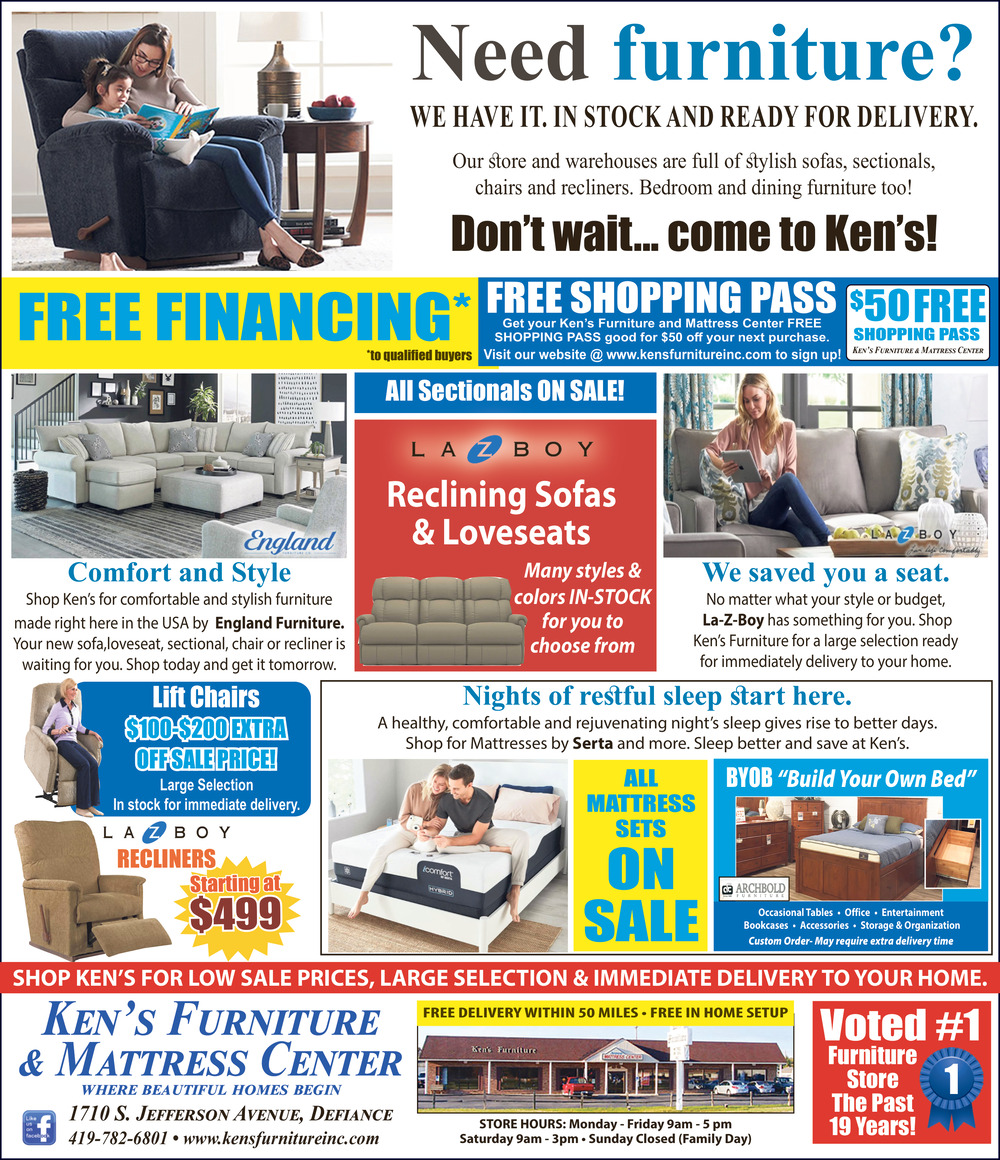 Ads for Ken's Furniture & Mattress Center in Defiance, OH