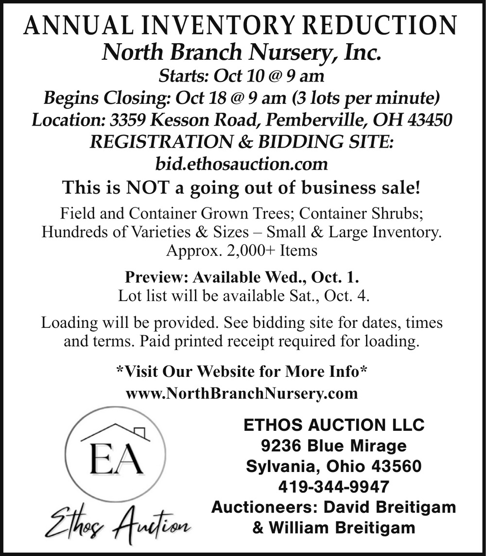 Oct 04, 2025. Ethos Auction, LLC Auctions Ads from The Crescent News