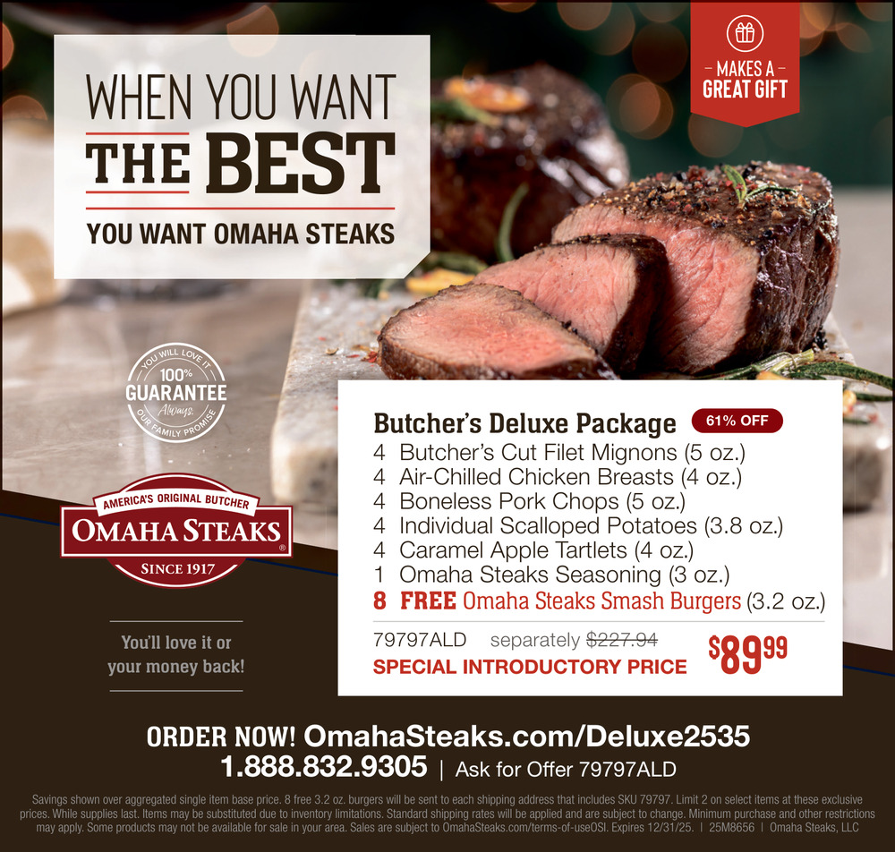 When You Want the Best You Want Omaha Steaks - Butcher's Deluxe Package $89