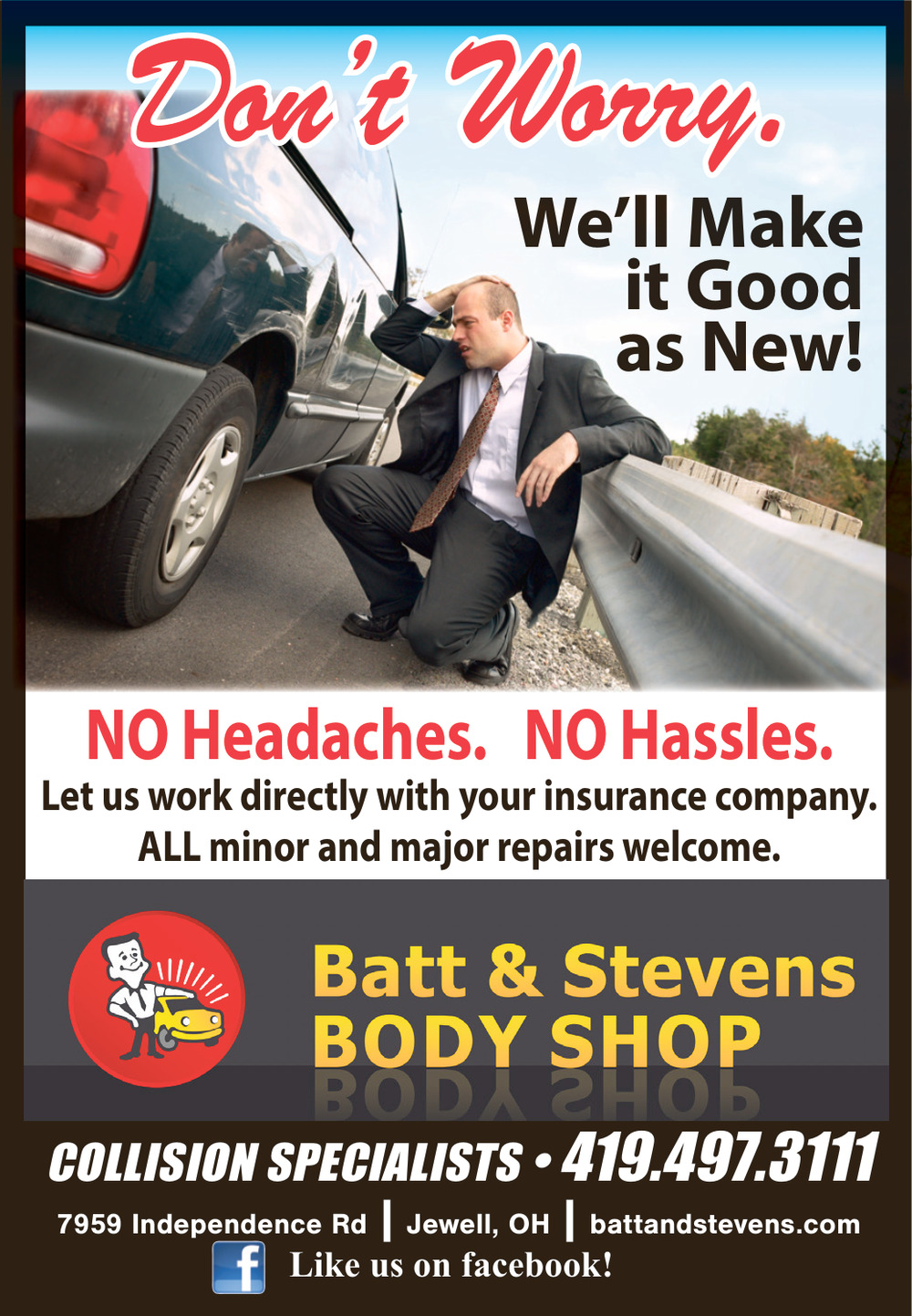 Ads for Batt & Stevens Body Shop in Northwest Ohio