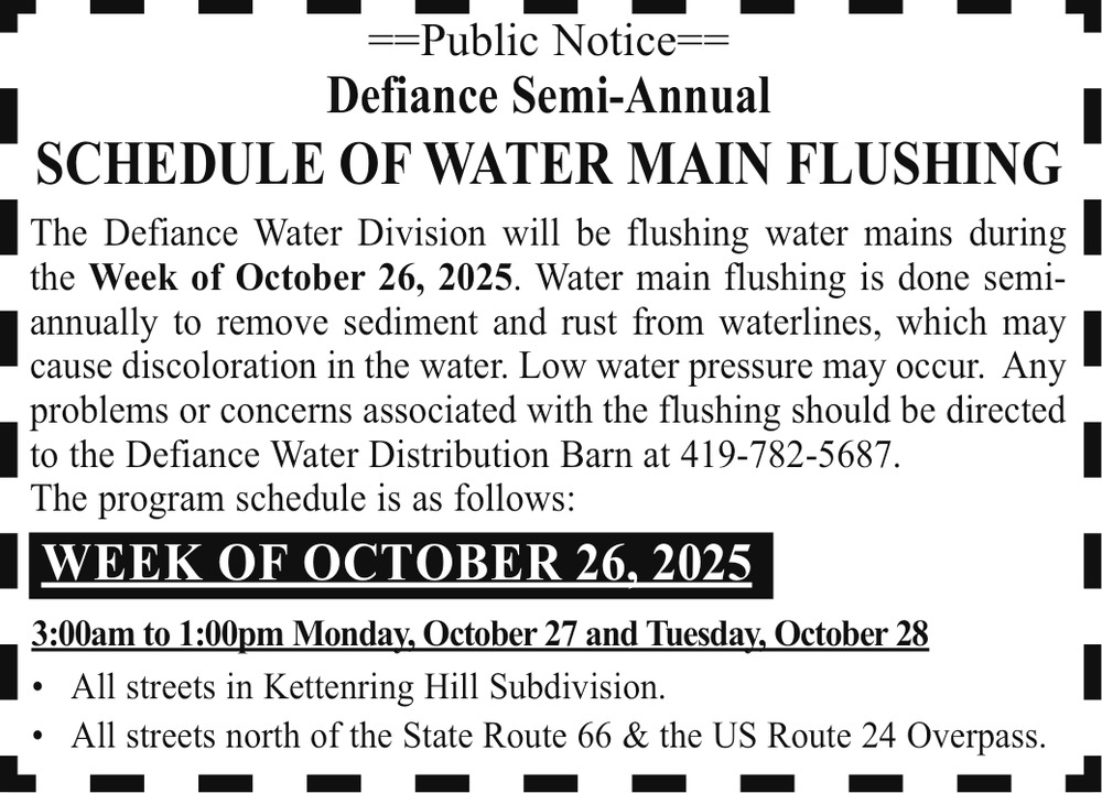 Oct 23, 2025. Defiance Water Division Government Ads from The Crescent News