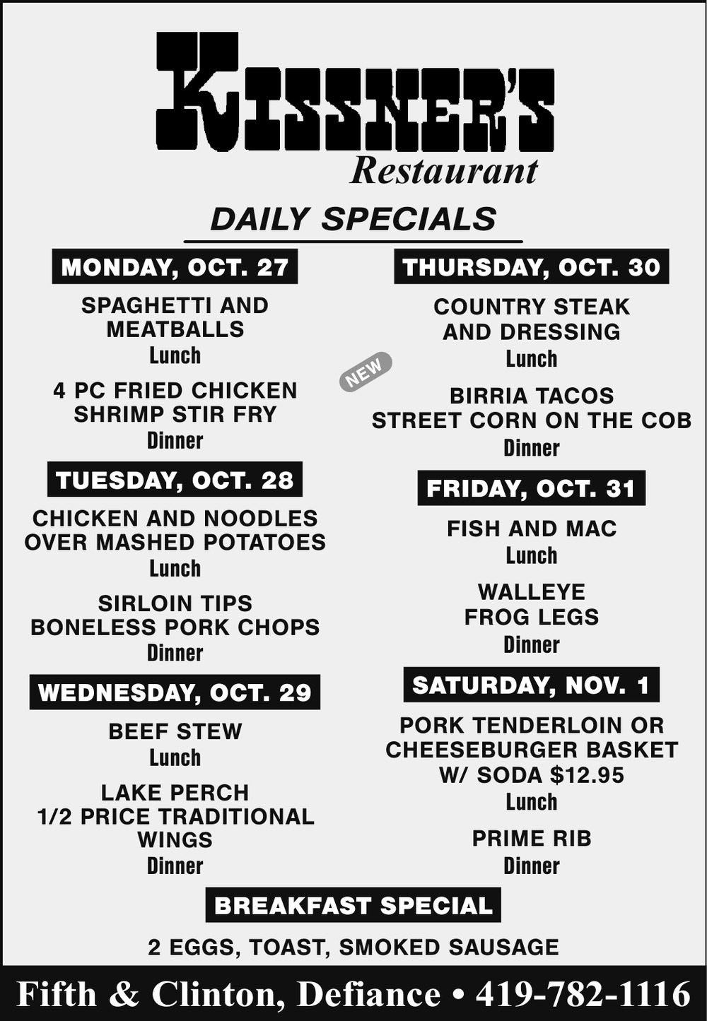 Oct 25, 2025. Kissner's Restaurants Ads from The Crescent News