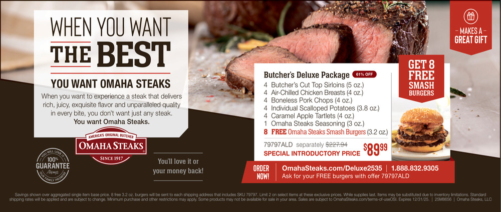 When You Want the Best You Want Omaha Steaks - Butcher's Deluxe Package $89