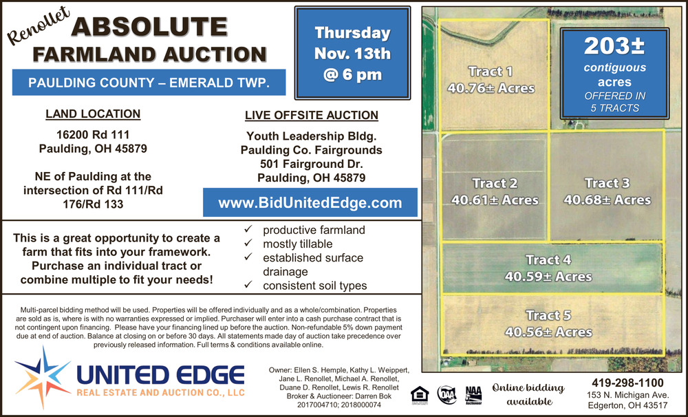 • Farmland Auctions in Edgerton, OH