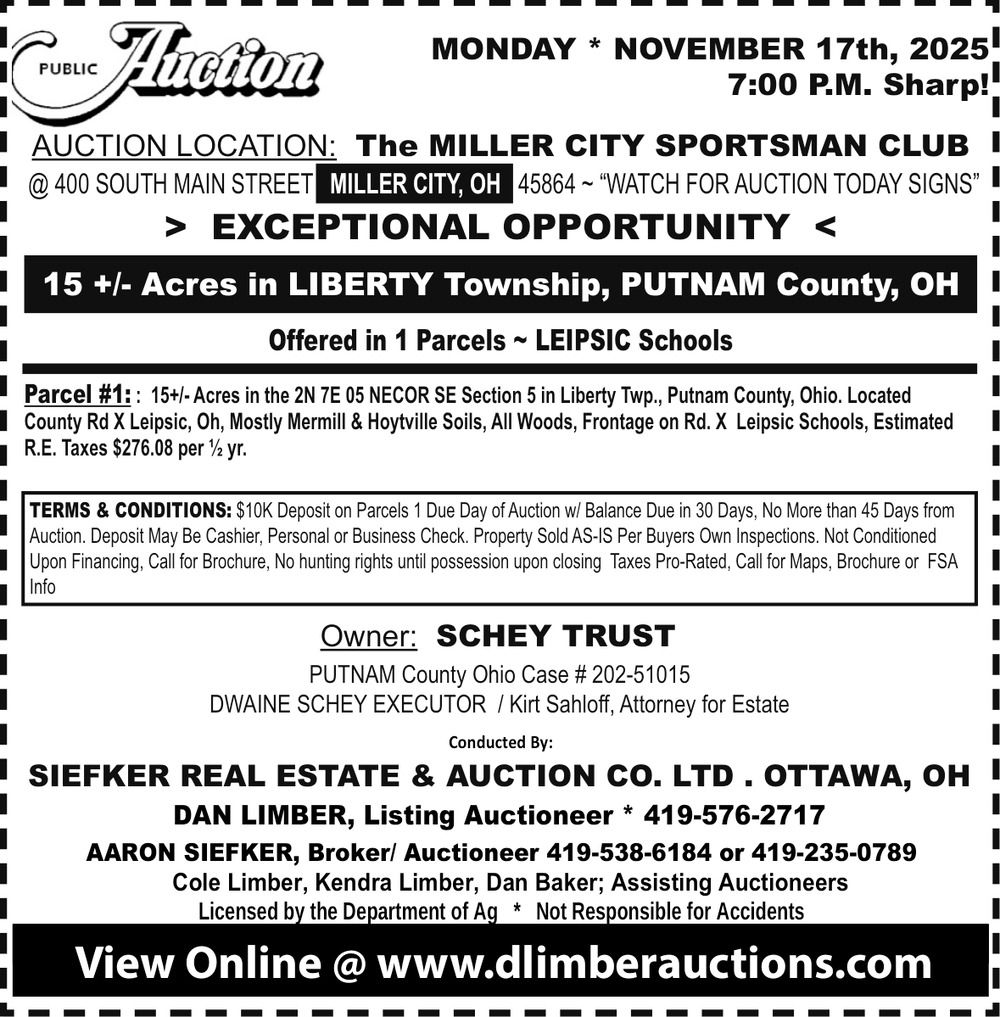 Oct 30, 2025. Siefker Real Estate & Auction LTD Auction Ads from The Crescent News