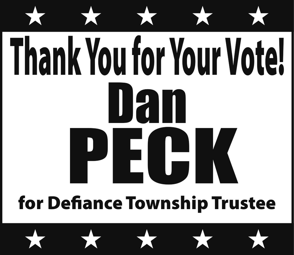 Nov 08, 2025. Dan Peck for Defiance Township Trustee Government Ads from The Crescent News