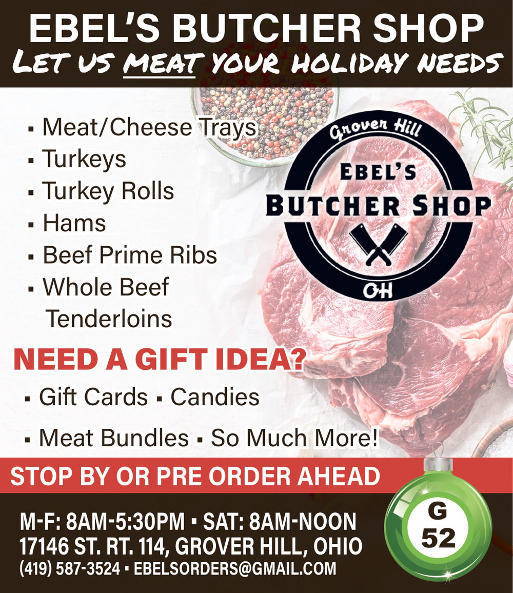 Ads for Ebel's Butcher Shop in Grover Hill, OH
