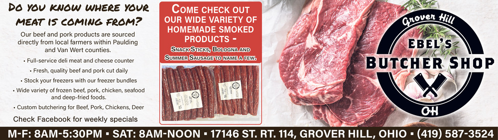 Ads for Ebel's Butcher Shop in Grover Hill, OH