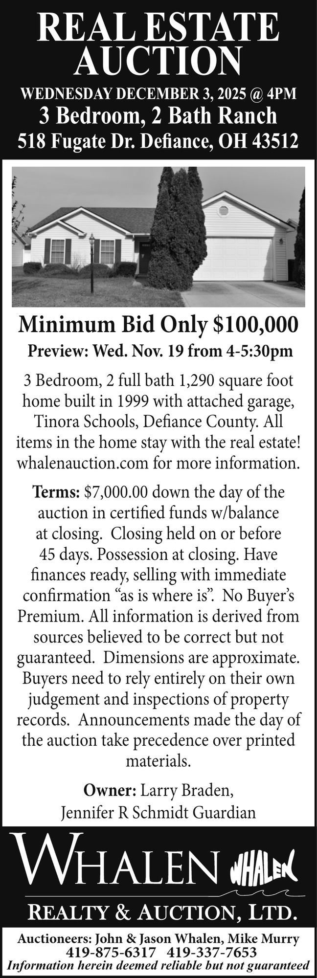 Nov 13, 2025. Whalen Realty & Auction, Ltd Auction Ads from The Crescent News
