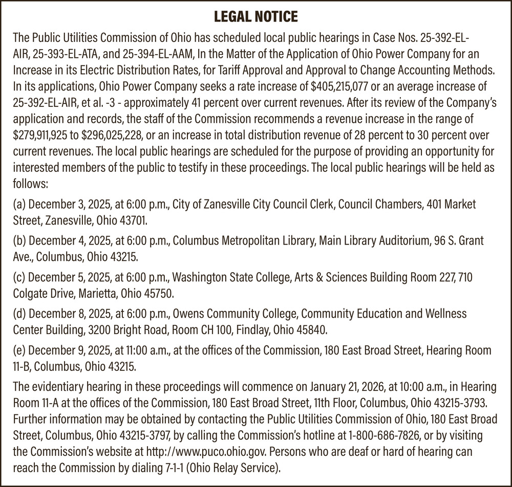 Nov 20, 2025. The Public Utilities Commission Of Ohio Public Notice Ads from The Crescent News