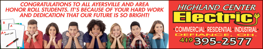 Congratulations to All Ayersville and Area Honor Roll Students. It's Because of Your Hard Work and Dedication That Our Future is So Bright
