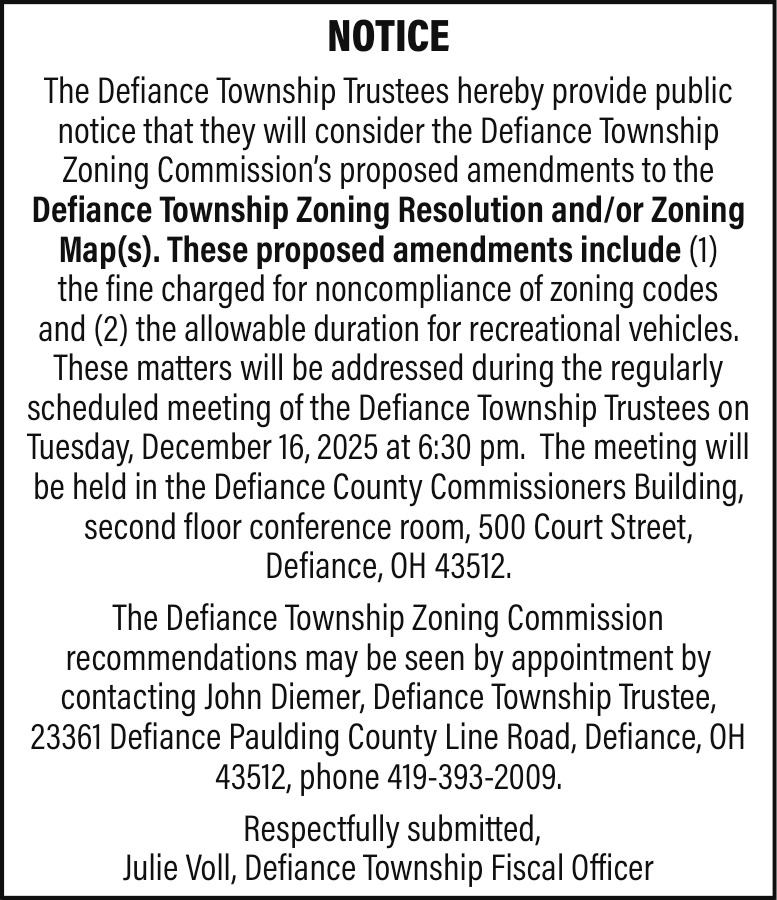 Dec 04, 2025. The Defiance Township Zoning Board Government Ads from The Crescent News