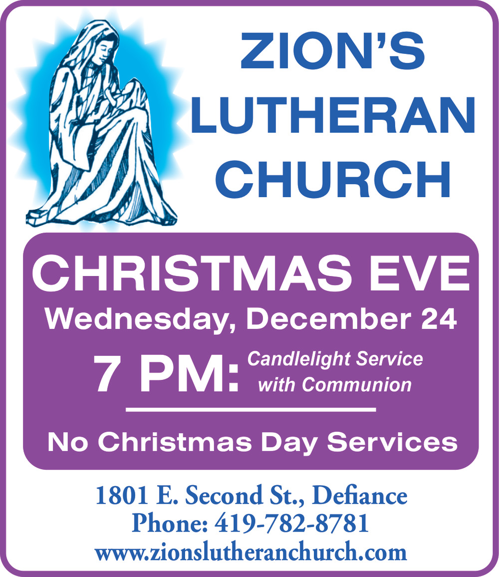 419-782-87811801 E 2Nd StDefiance, OH 43512(Zion\\'s Lutheran Church - Defiance)