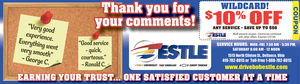 Ads for Estle Chevrolet Cadillac in Northwest Ohio