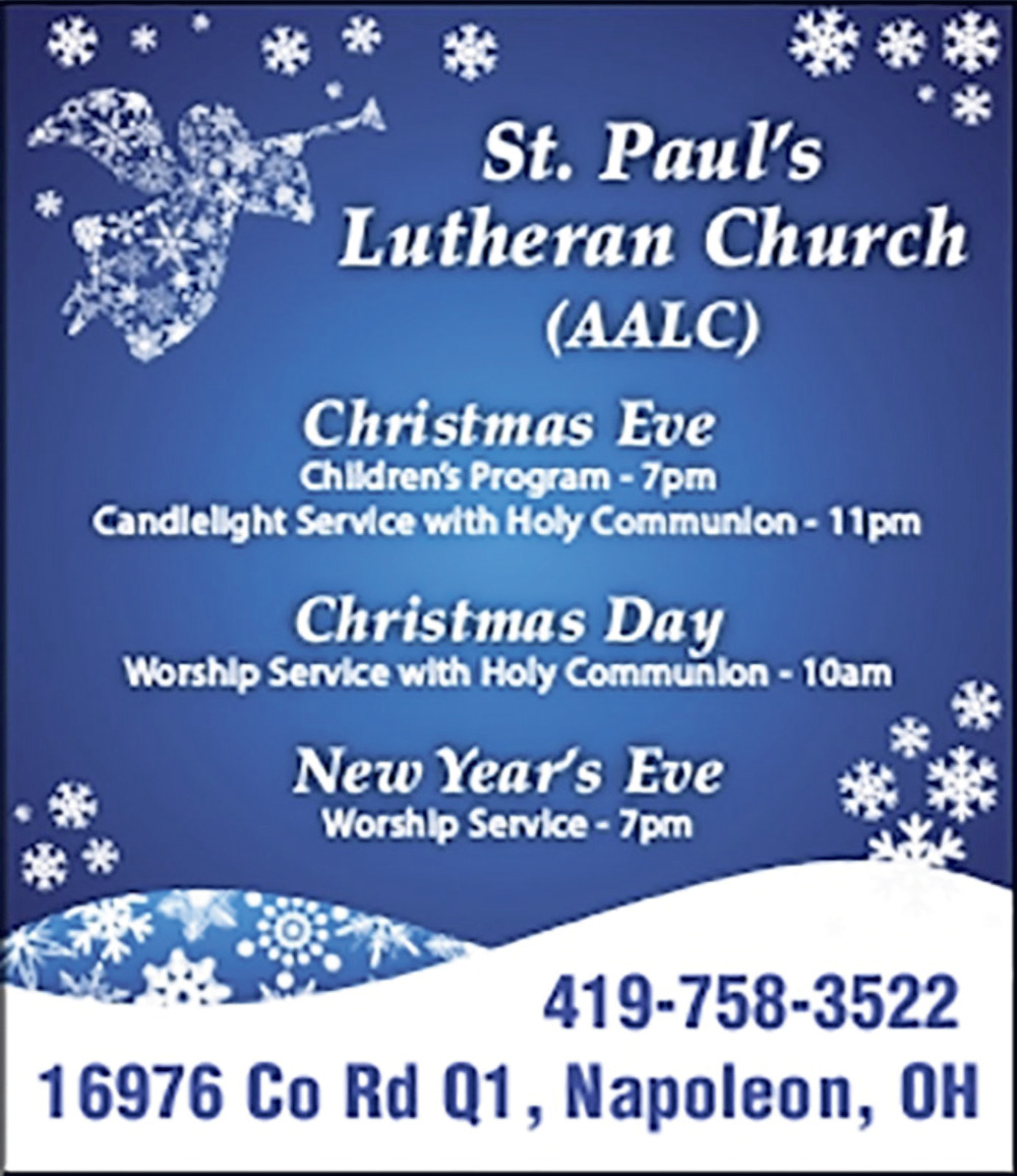 Ads for St Paul's Lutheran Church in Defiance, OH