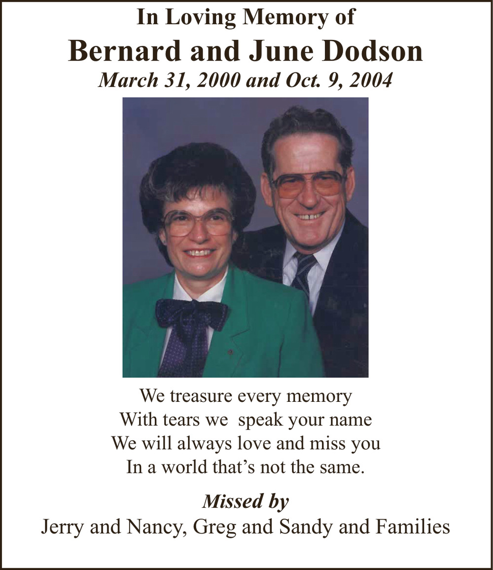 In Loving Memory of Bernard and June Dodson