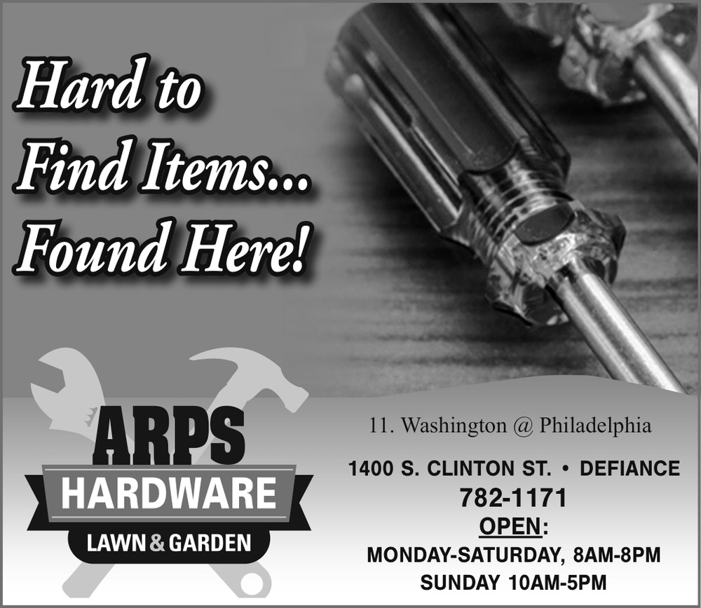 Ads for Arps Hardware Lawn & Garden in Defiance, OH