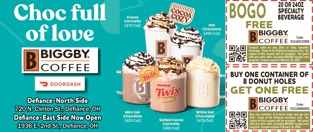 Ads for Biggby Coffee in Defiance, OH