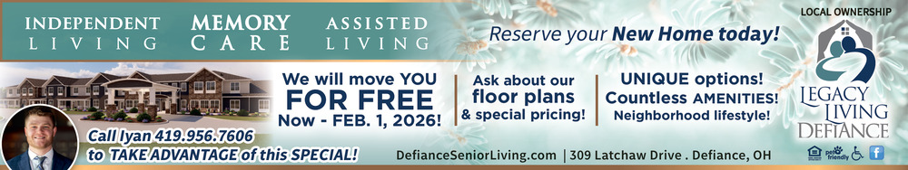 Feb 03, 2026. Legacy Living Defiance Senior Living Ads from The Crescent News