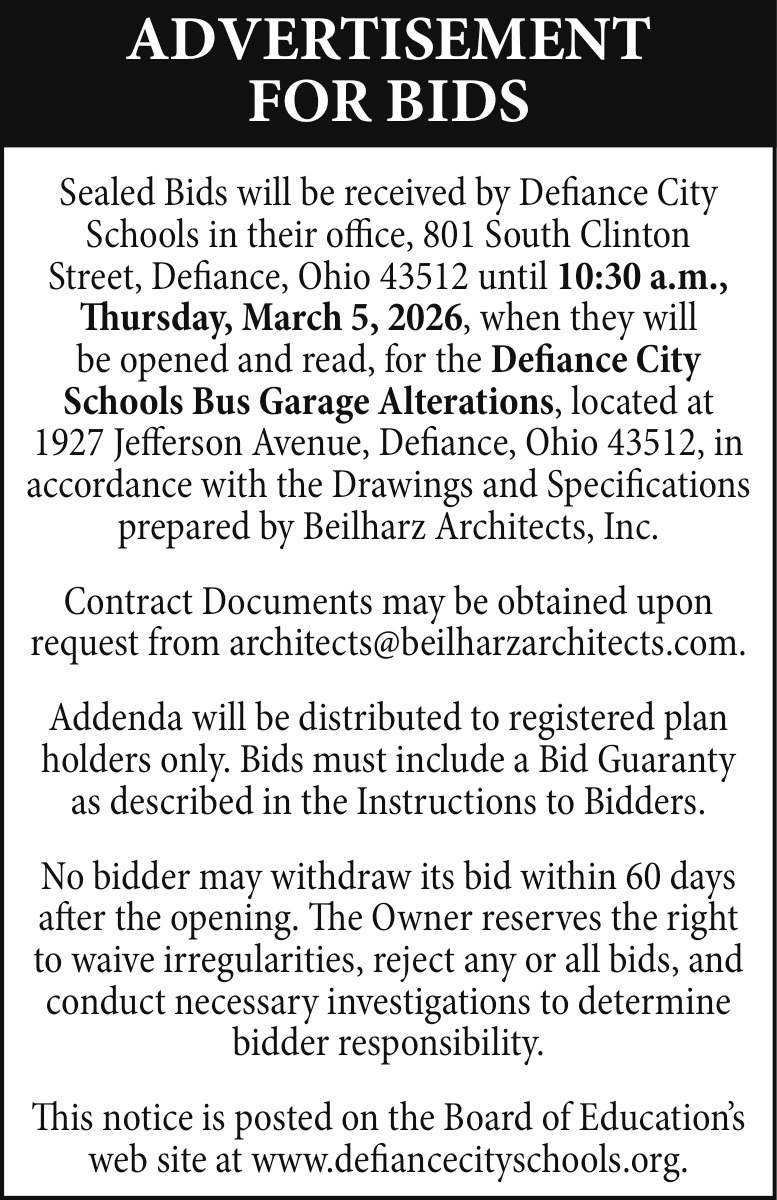 Feb 03, 2026. Defiance Elementary Schools Education Ads from The Crescent News