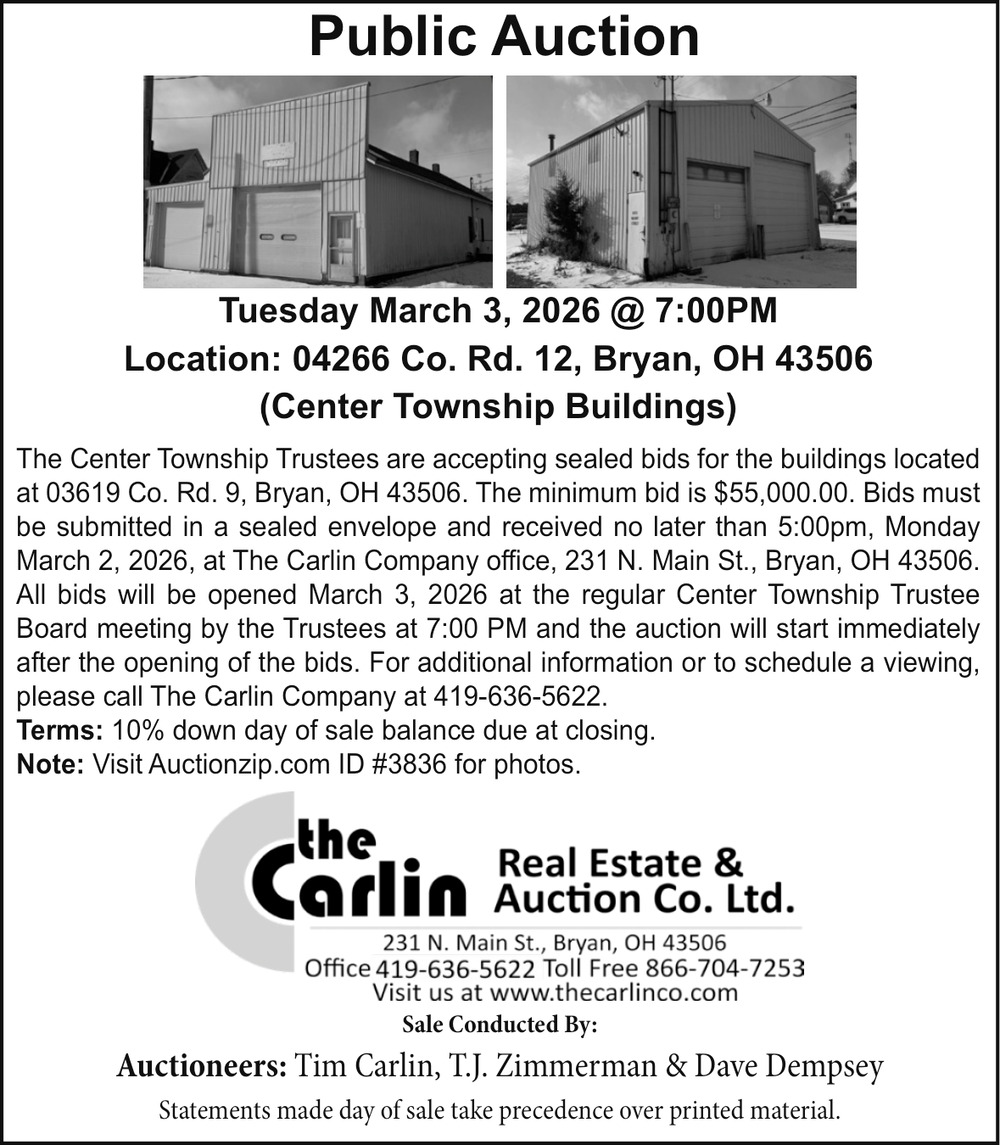 Ads for The Carlin Real Estate And Auction Co. in Bryan, OH