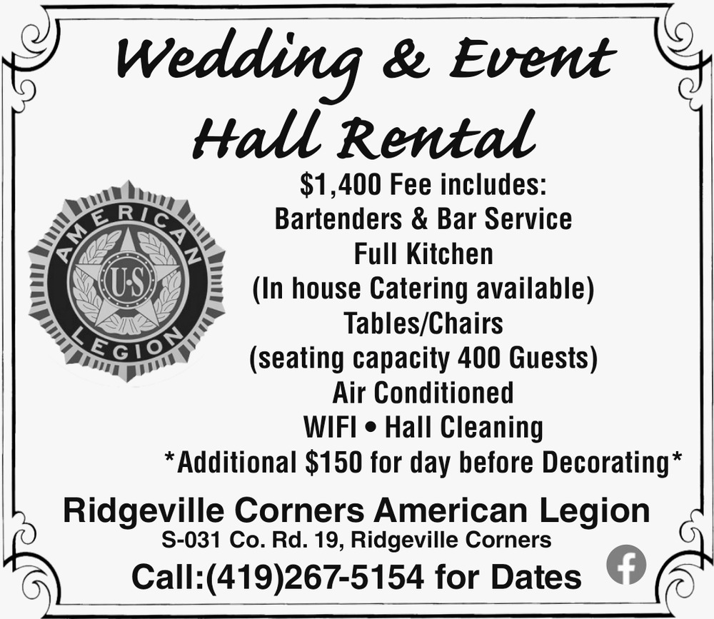 Other Ads from Ridgeville Corners American Legion