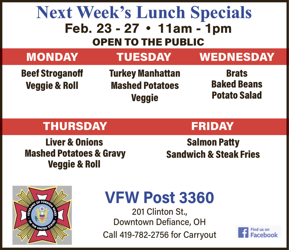 Ads for VFW Post 3360 in Defiance, OH
