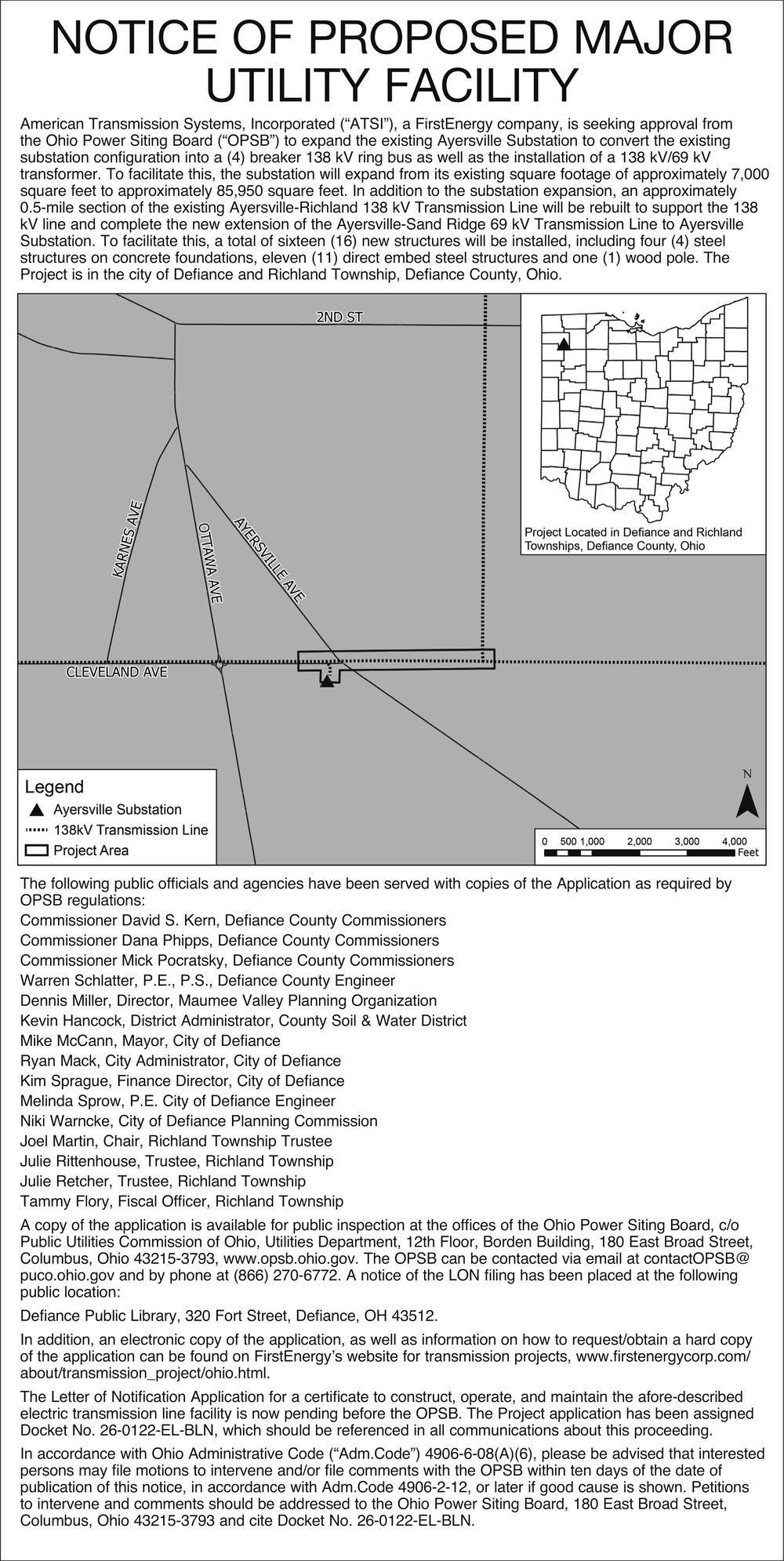 American Transmission Systems Public Notice in Holgate, OH