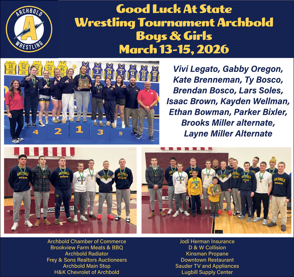Good Luck At State Wrestling Tournament Archbold Boys & Girls