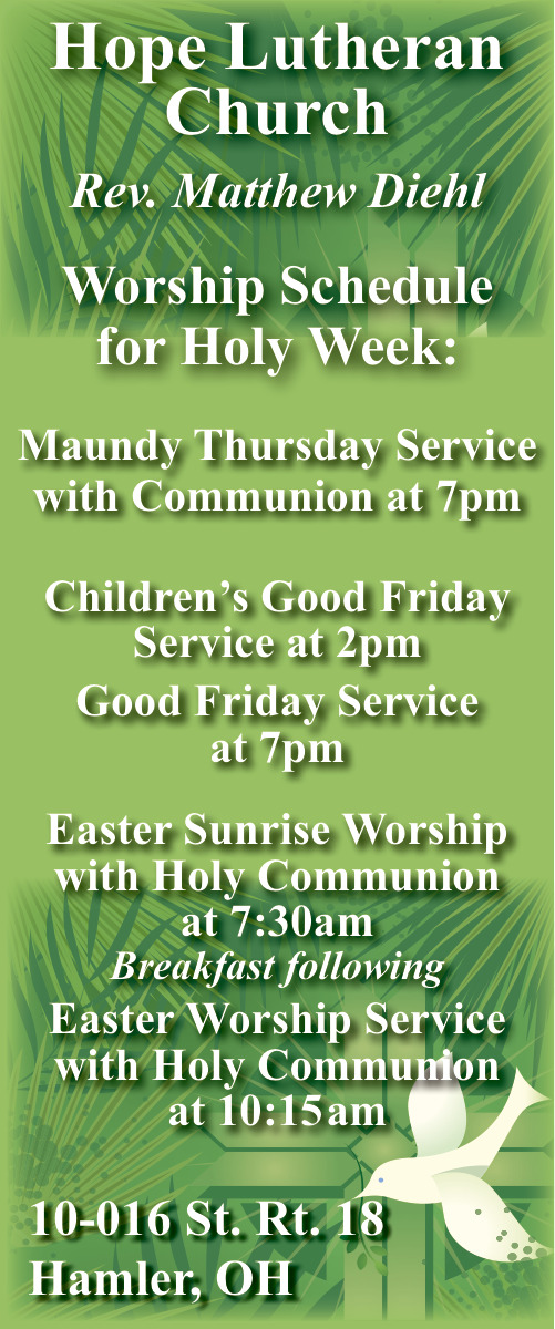 Mar 31, 2026. Hope Lutheran Church Church Ads from The Crescent News