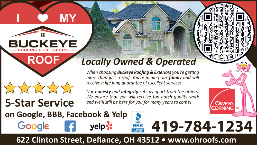 Ads for Buckeye Roofing & Exteriors in Defiance, OH