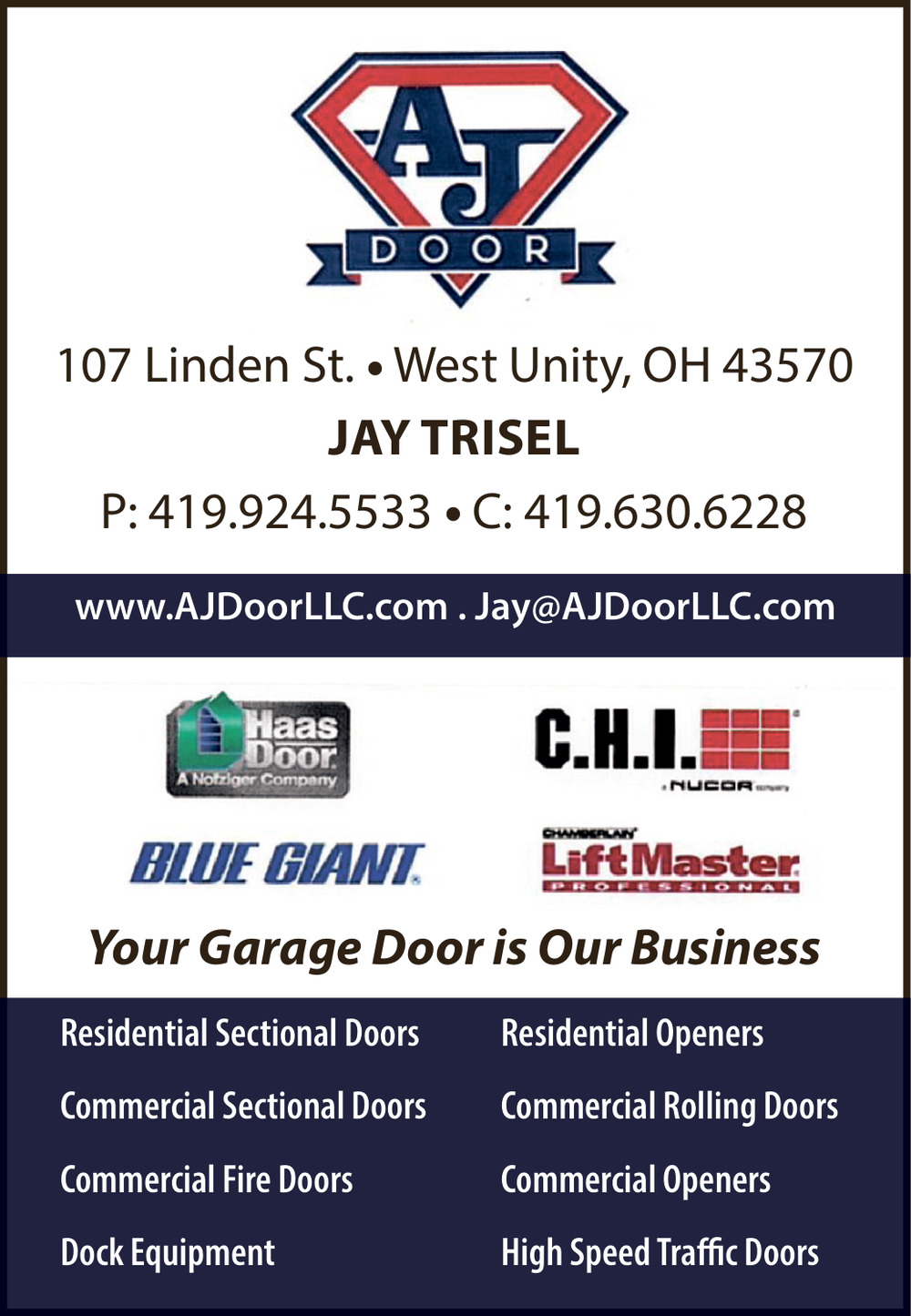 Ads for AJ Door, LLC in West Unity, OH
