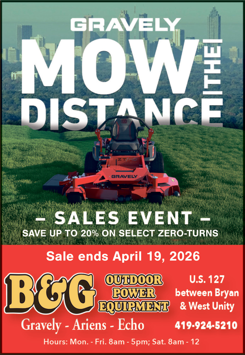 Ads for B&G Outdoor Power Equipment in West Unity, OH