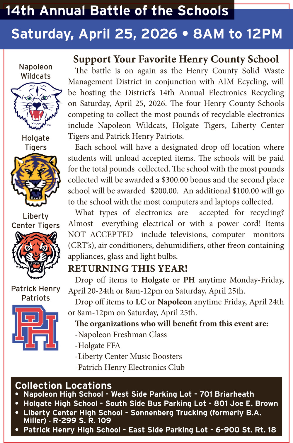 419-599-1050701 Briarheath AveNapoleon, OH 43545(Napoleon High School)