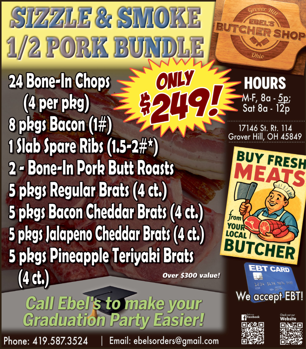 Ads for Ebel's Butcher Shop in Grover Hill, OH
